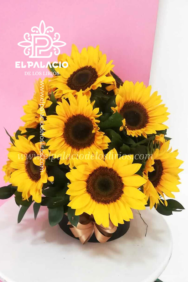 Bonito arreglo de girasoles decorado con moño y tarjeta, apenas para un detalle sencillo pero con un bonito significado.