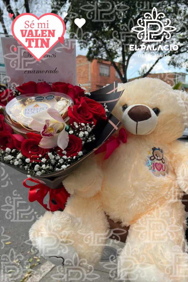 Oso gigante con rosas, me tienes enamorado
