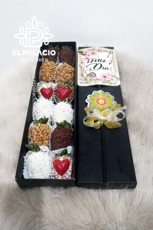 Caja de fresas recubiertas con maní, coco y chocolate ideal para cualquier ocasión especial que desees celebrar.